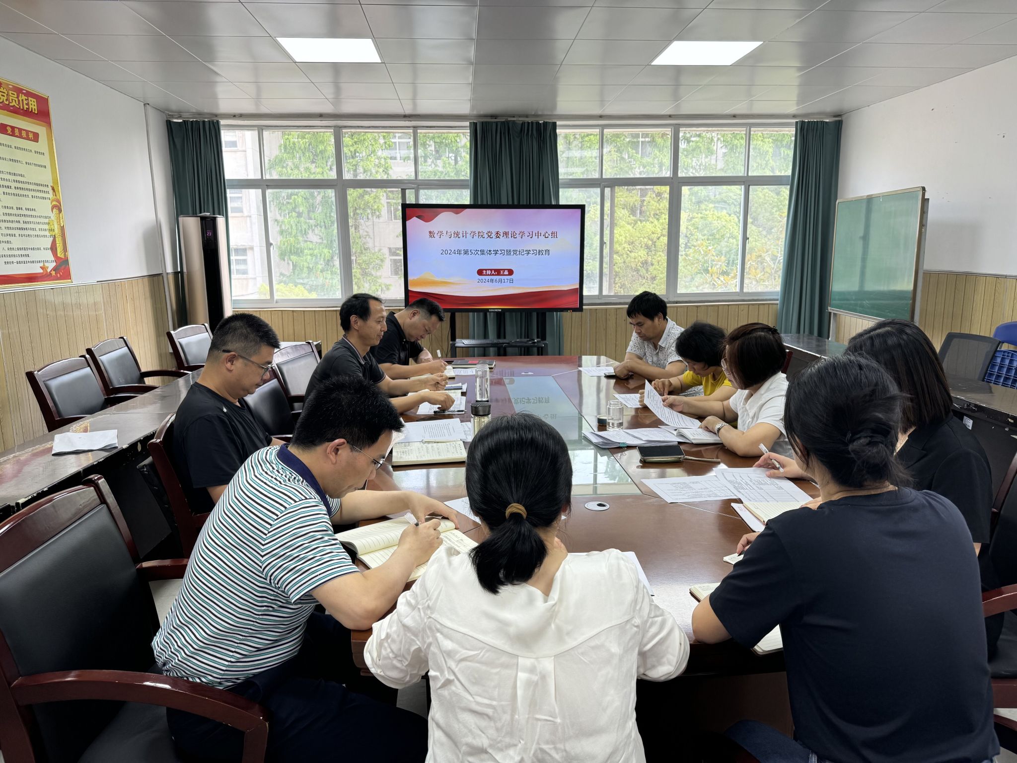 6月17日下午,beat365党委理论学习中心组在学院二楼会议室举行2024年第5次集体学习暨党纪学习教育。全体党委委员、各党支部书记参加会议,院党委书记王晶主持会议。