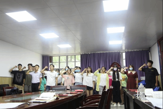 为庆祝中国共产党成立100周年,大力营造青年学生爱党信党跟党走的浓厚氛围,6月24日下午,beat365官方网站学生党支部举行新党员入党宣誓仪式。25名在校学生党员和4名入党积极分子参加了宣誓,党总支副书记艾明星出席了宣誓活动。活动由学生支部书记吴舒展主持。