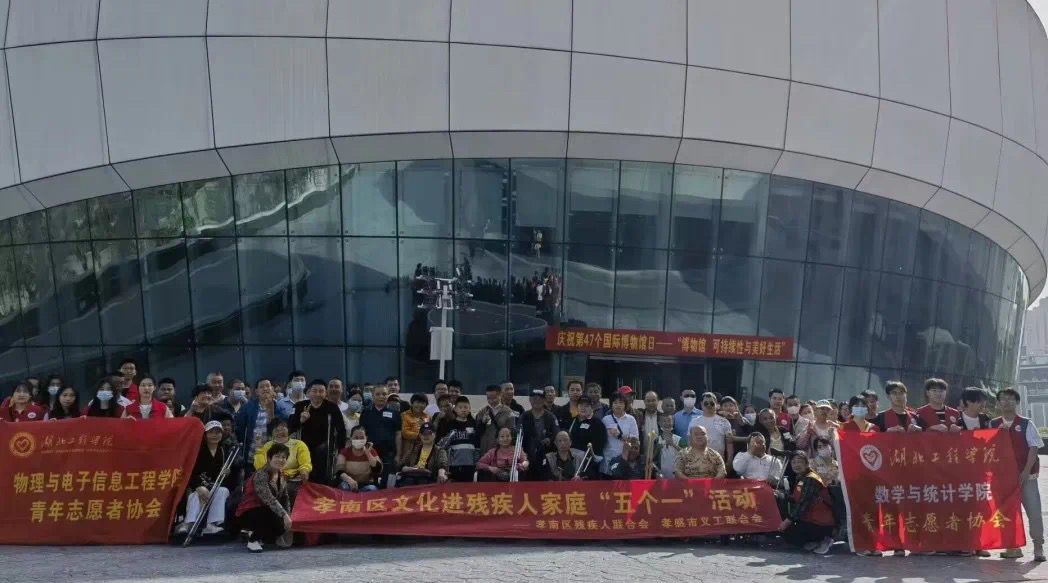 为满足残疾人的精神文化需求,增强残疾人的自信心,促进残疾人平等地参与社会,提高残疾人生活幸福指数,beat365官方网站beat365官方网站青年志愿者协会、物理与电子信息工程学院青年志愿者协会携孝感市义工联合会于4月16日在孝感博物馆、图书馆、电影院等地方开展了“筑爱助残,共享阳光”关爱残疾人志愿者活动。