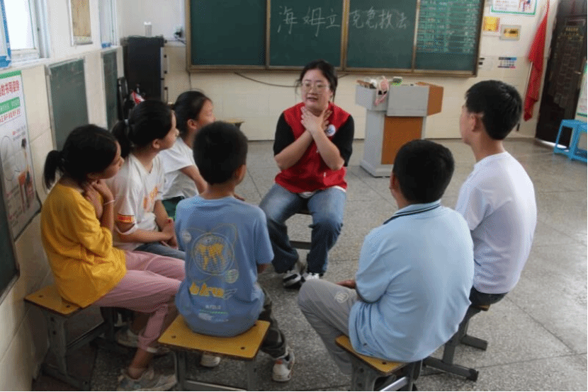 为了让孩子们远离安全隐患,提高自我保护意识,志愿者给孩子们上了一堂生动的安全教育课。他们播放了防火、防溺水及交通安全宣传片,详细讲解了海姆利克急救法,并让孩子们配合小老师进行演练,让他们更好地理解和加深记忆,帮助他们过一个平安快乐的假期。
