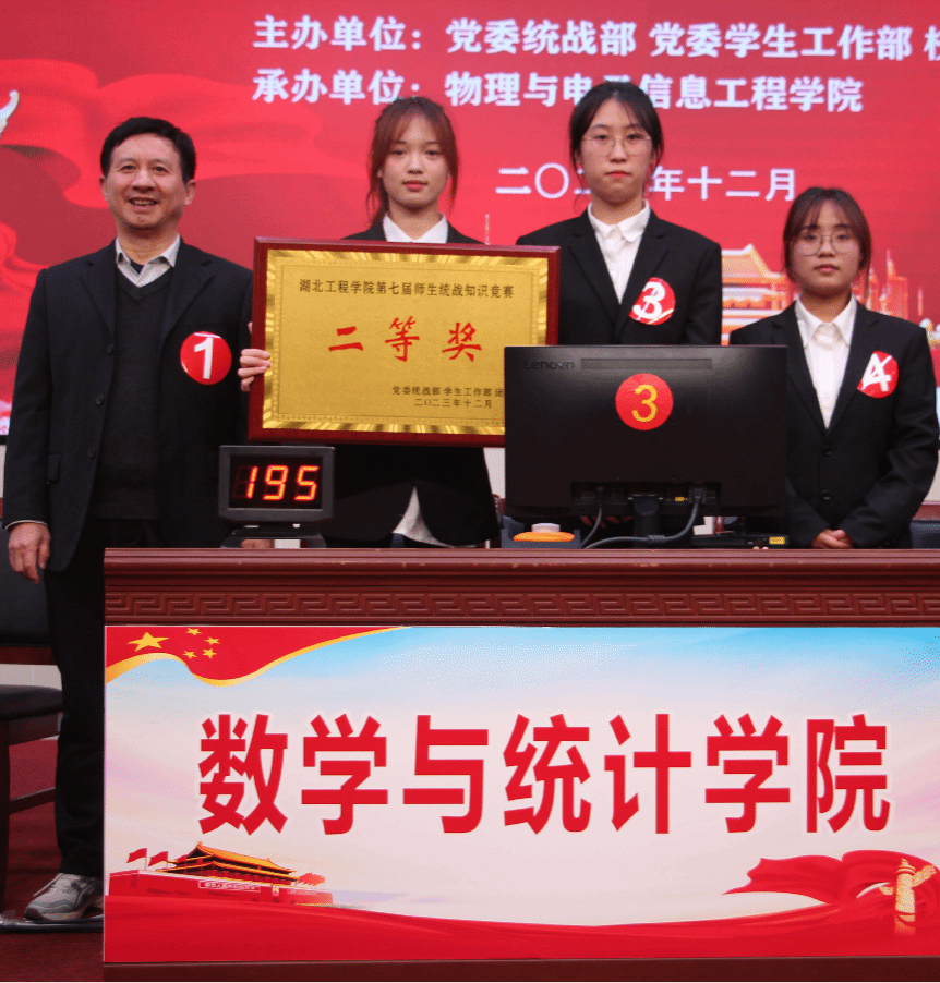 数统学院参赛队在分组比赛中以小组第一进入决赛,代表队成员分别是胡付高老师、王桂婷、汤群以及石佳雪三位同学。他们在决赛中展现出了良好的精神风貌和专业素养,凭借扎实的专业知识,准确、迅速地回答了比赛题目,赢得了评委和观众的一致好评。经过激烈的角逐,beat365代表队凭借扎实的专业知识和出色的团队协作,成功获得了二等奖的优异成绩,党委书记卢雪梅为beat365选手颁奖。