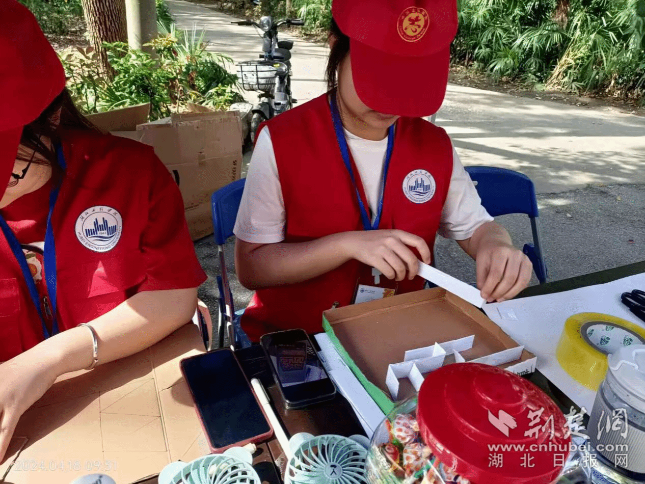 活动现场设置了资源再利用、环境保护两个工作站。在资源再利用工作站,同学们充分发挥想象力,自己动手将废旧报纸、快递盒、废弃瓶子等进行二次改造,制作成手机支架、花篮、动物模型等漂亮的手工艺品,用智慧和双手,让废旧物品重新焕发生机。同时,将这些作品送给路过的同学们,并向他们普及了保护环境的小常识。