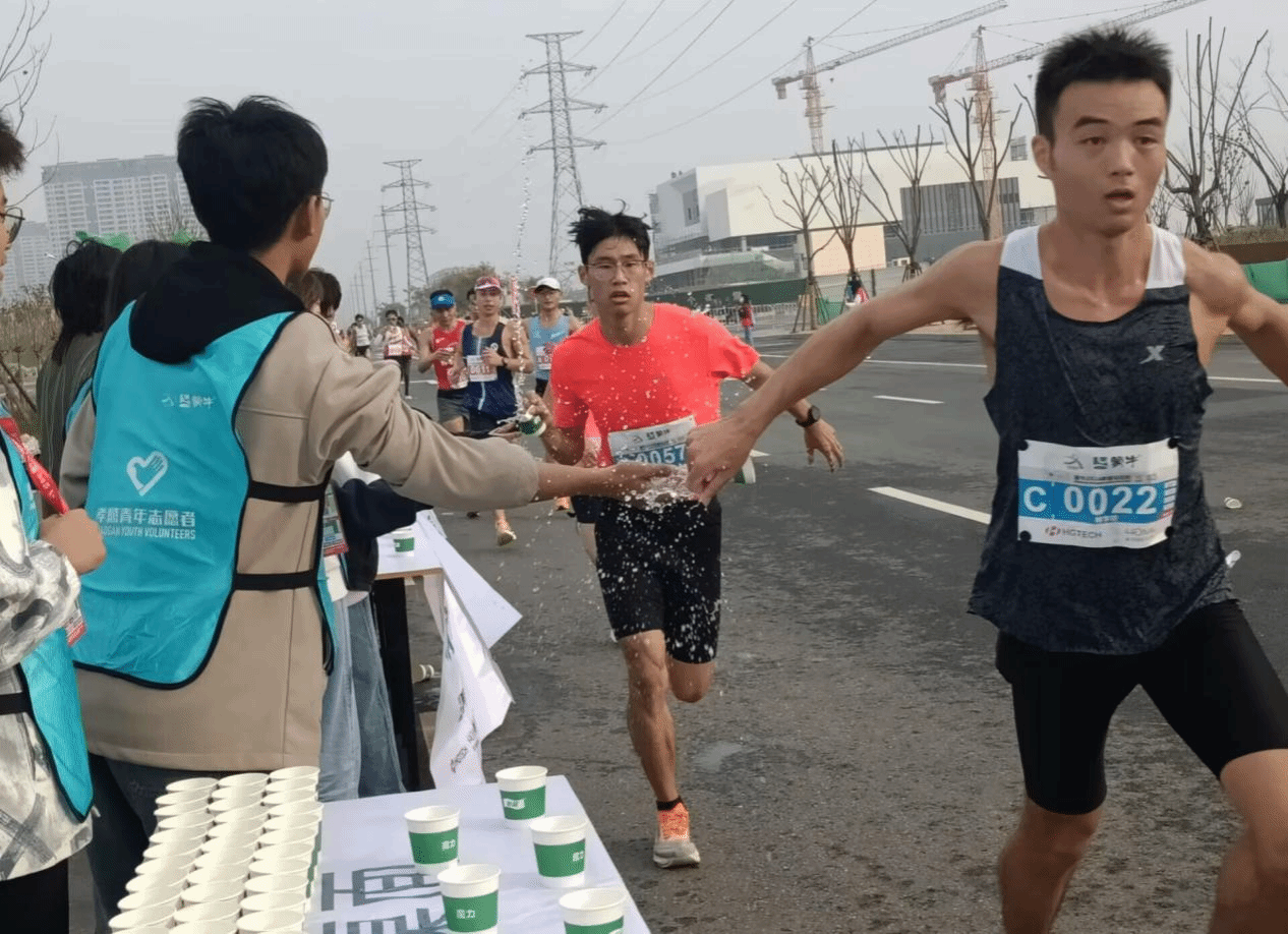 志愿者们于党日凌晨四点三十分集合完毕,五点整准时发车赶往工作场地。到达指定地点后迅速开始了紧张的准备工作。大家自发地组成小组,互相配合,仔细核对物资,并运送至补给站点,随后分发摆放。赛道沿线,每隔一段距离就有志愿者的身影,他们身着统一的志愿者服装,精神抖擞,每一个微笑都充满了热情与活力。 赛事正式开始,当运动员经过补给站点,志愿者们为选手们递上饮用水和补充能量的食物,并为他们加油打气,一句句简单的口号,在选手们体力接近极限时,成为他们坚持下去的动力。志愿者们还时刻关注着选手们的身体状况,一旦发现有选手出现不适,便迅速行动,与医疗人员配合,为选手提供第一时间的帮助。