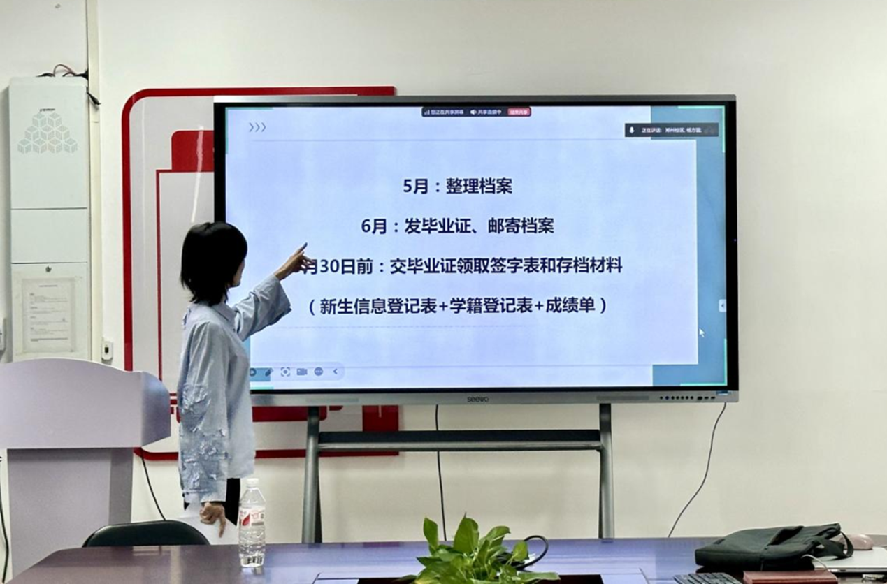 学籍管理员李晨详细解读了工作节点:目前全院学生已完成登录学信网自查信息,各班级于5月23日前完成毕业生档案材料整理,包括学籍登记表、成绩单、毕业生登记表等,并强调“档案材料需逐项核对,严禁多装漏装”。针对毕业证书发放,李晨明确:“6月10日起,学院将联合纪委核验证书信息,实行‘一人一编号’签字领取制度,杜绝错发漏发。”此外,她提醒辅导员及时处理22名入伍学生的学籍保留与复学衔接工作。