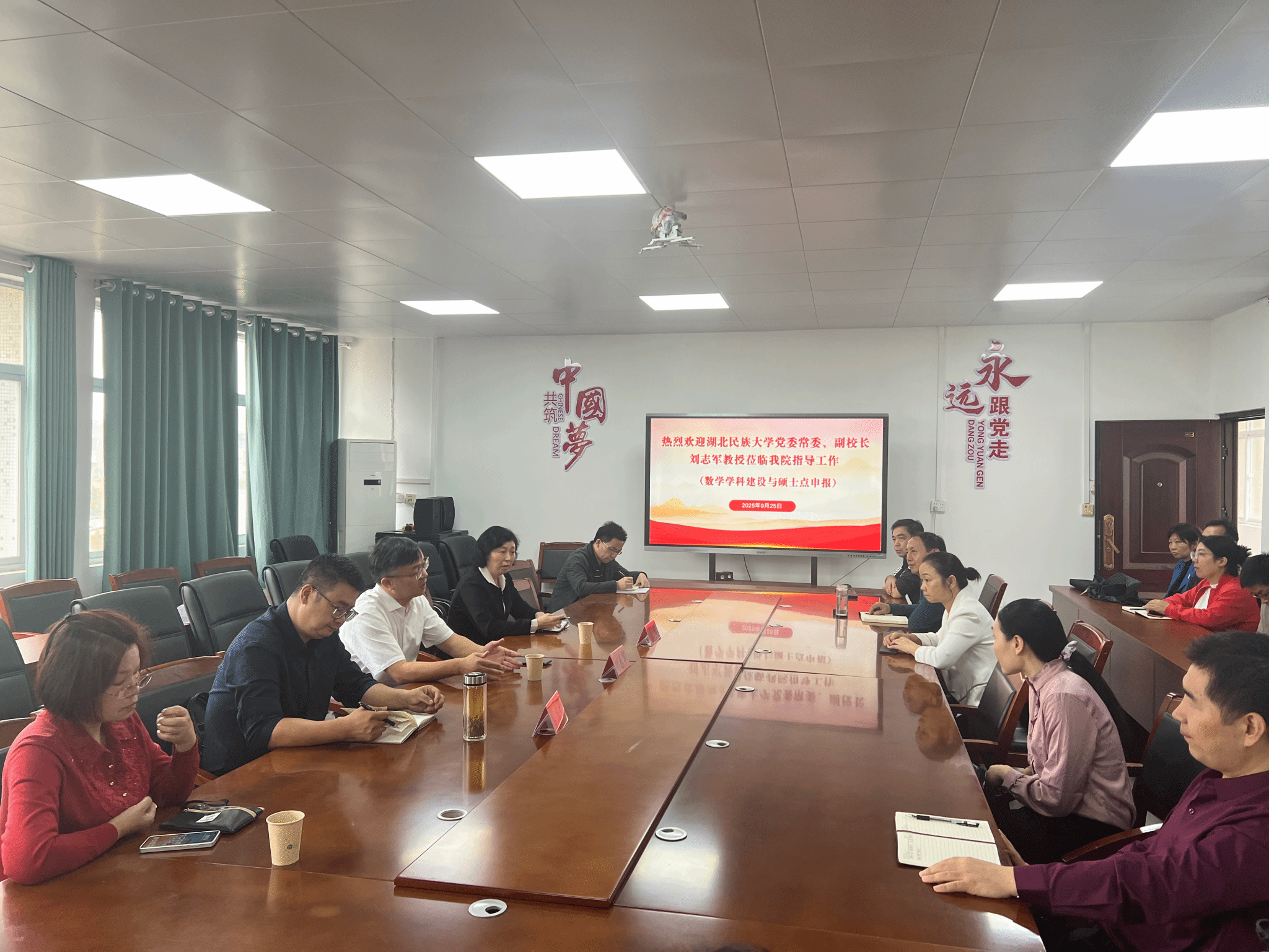 为深入推进数学学科高质量发展,助力硕士点申报工作,9月25日,由科技处主办、beat365官方网站承办的“数学学科建设与硕士点申报”澴川讲坛在院会议室举行。本次讲座特邀湖北民族大学党委常委、副校长刘志军教授主讲。副校长李渺、教务处长肖应雄出席讲座,beat365党委书记王晶、副院长潘保国及骨干教师参加讲座。