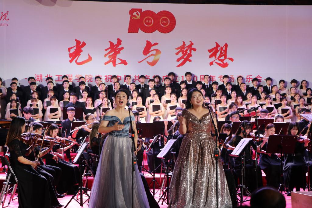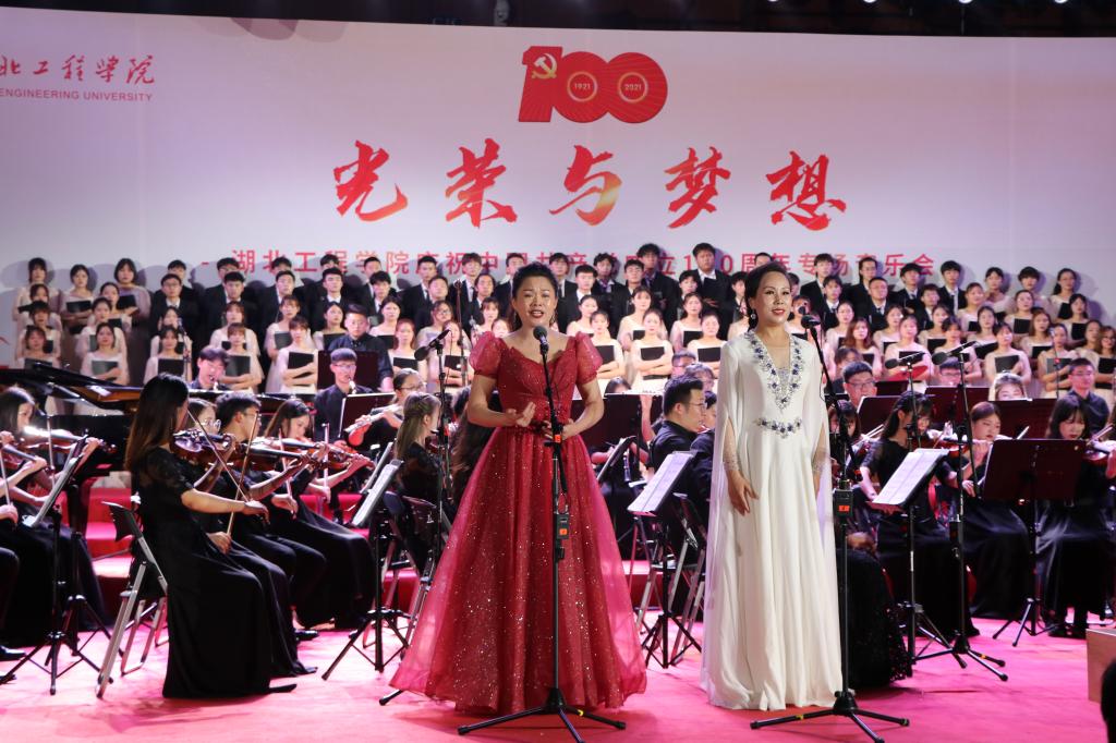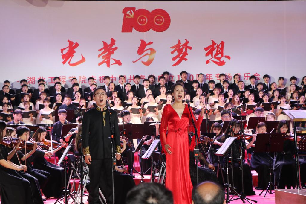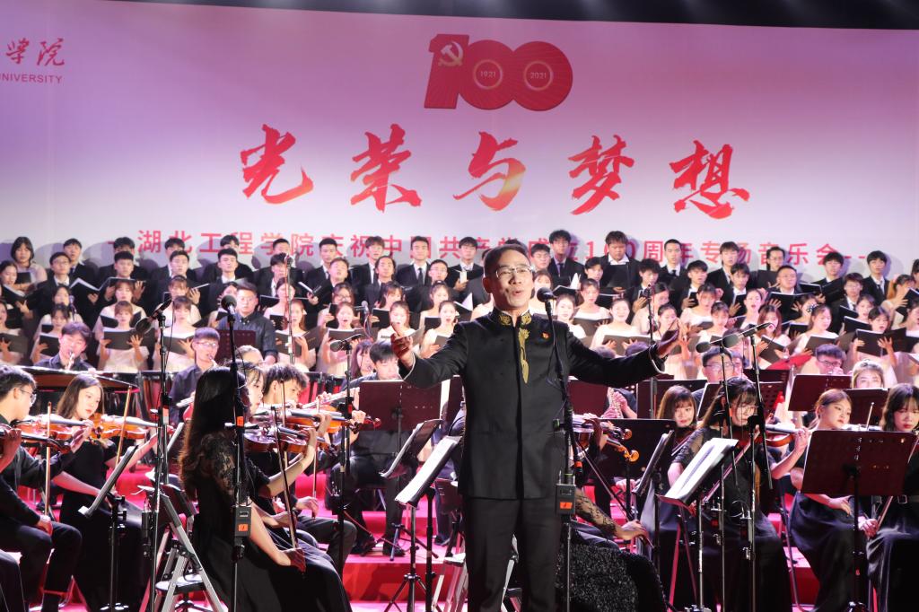 整场音乐会以百年党史为基石、以交响合唱音乐会为载体,精选了《红旗颂》《七律·长征》《歌唱祖国》《党 啊亲爱的妈妈》《在希望的田野上》《向往》等14首中国共产党成立以来各时期的经典歌曲。演唱者用或高亢、或悠扬、或深情的歌声,唱出了心中对党的感恩、对祖国强大的热爱、对美好生活的憧憬,抒发了热爱党、热爱祖国、热爱学校的深厚感情,展现湖工师生青春向党、奋斗强国的精神风貌,汇聚全校师生齐心协力迈入新征程、建设国内一流应用型大学的磅礴力量。