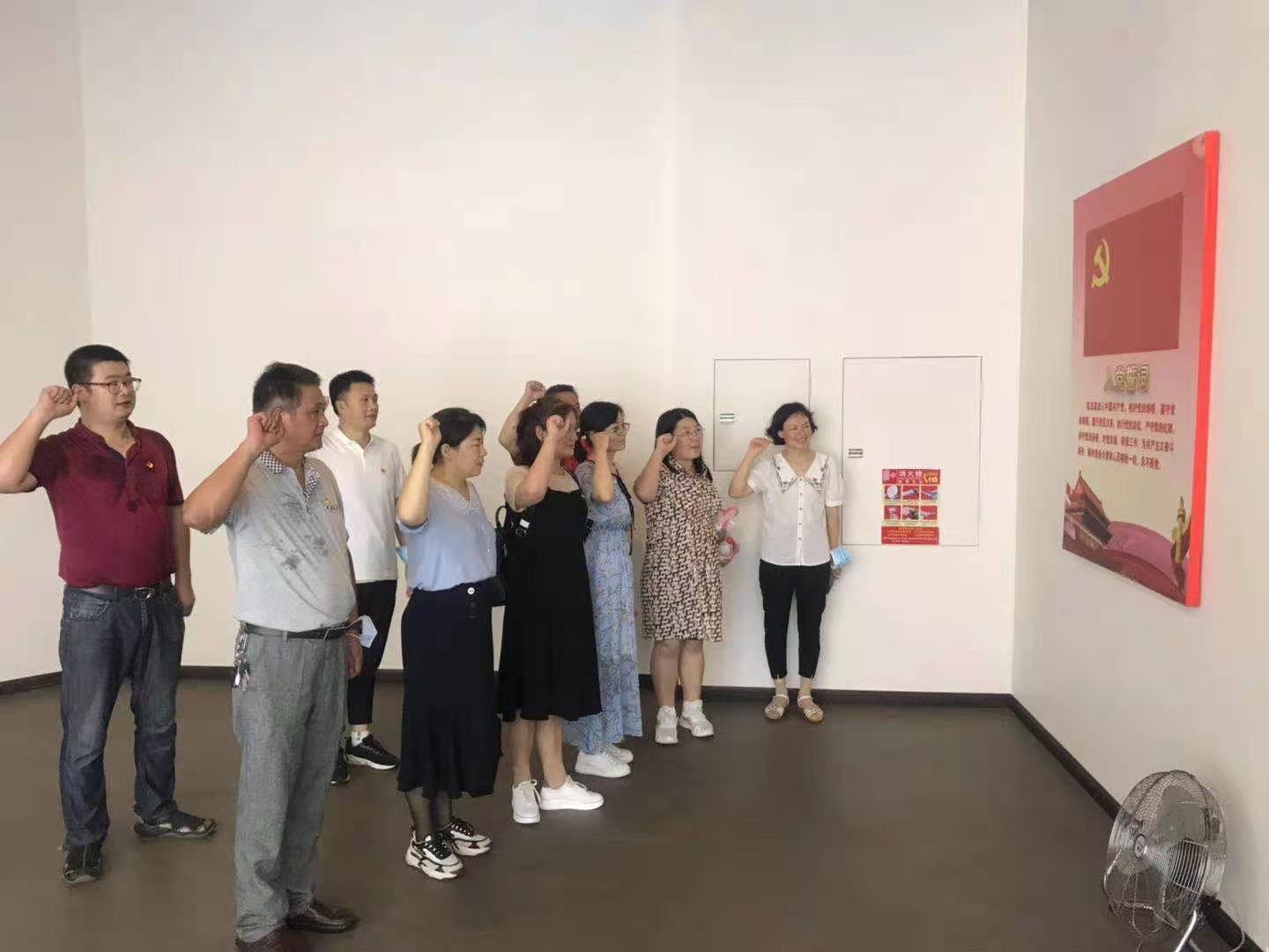 随后,全体党员跟随讲解员参观鄂中革命烈士纪念馆,缅怀革命先烈,追忆红色历史,共同接受革命教育。展厅分四个部分,展现“汤池训练班”和鄂中抗日的丰功伟绩。馆内陈列了湖北省自辛亥革命至社会主义建设时期300多位革命烈士的事迹。1000余幅图片、百余件革命文物,更有雕塑、沙盘、油画、电影、录像等多种表现手法将革命烈士们艰苦卓绝、不怕牺牲的斗争场景描绘得栩栩如生,讲述了一个又一个可歌可泣的革命故事。在第四展厅入党誓词前,全体党员面向党旗,举起右手,重温入党誓词。