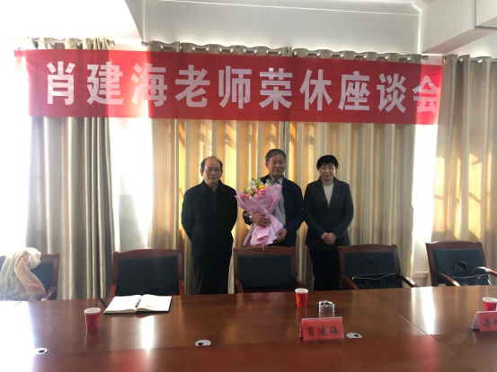 3月9日下午,beat365肖建海老师荣休座谈会在教六三楼会议室召开。党委常委、副校长鲁旭东教授、副校长李渺教授,离退老教师胡家喜、学院班子成员、督导员、组织员及教师代表参加了会议。座谈会由beat365官方网站党总支书记王晶主持。