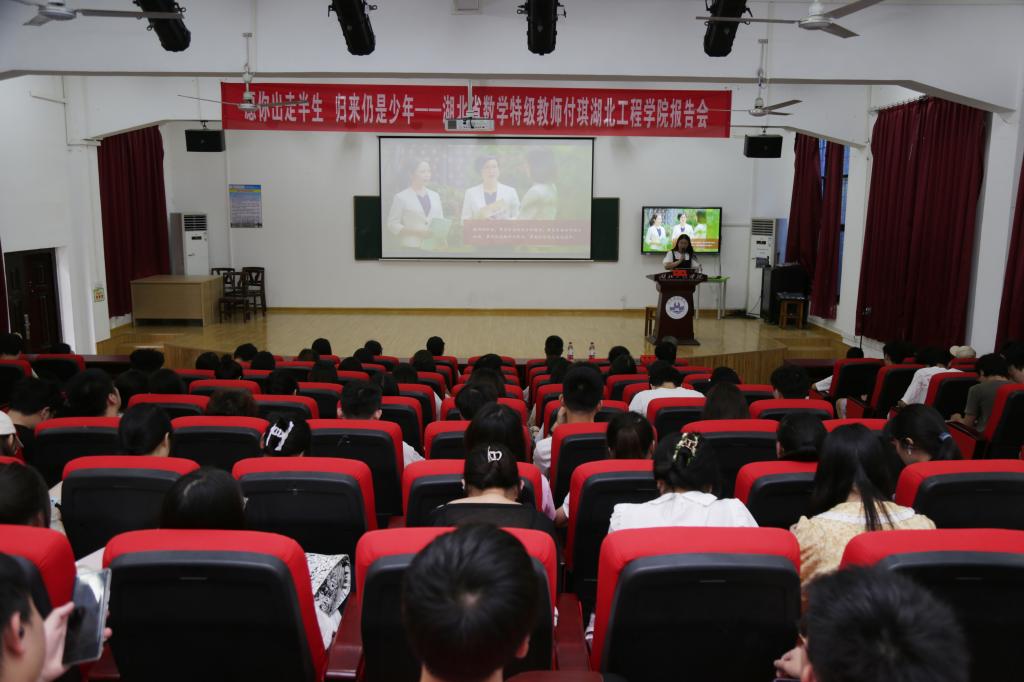 6月23日下午15:00——16:30分,孝感市文昌中学数学特级教师付琪在教育学院学术报告厅为beat365全体师范专业学生作教育报告。孝感市教育考试院党支部书记、中学数学特级教师万新才,beat365官方网站院长肖应雄教授参加报告会。肖应雄主持报告会。