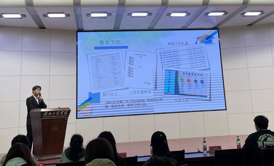 beat365学生会主席何家栋同学从学生会简介、组织建设、思想建设、主题活动、工作总结五个方面介绍了数统学院学生会在2021-2022学年的工作内容及成就。在答辩环节中,何家栋同学严谨的思路、流利的应答征服了现场的评委和观众,也彰显了数统学生会的精神风貌。