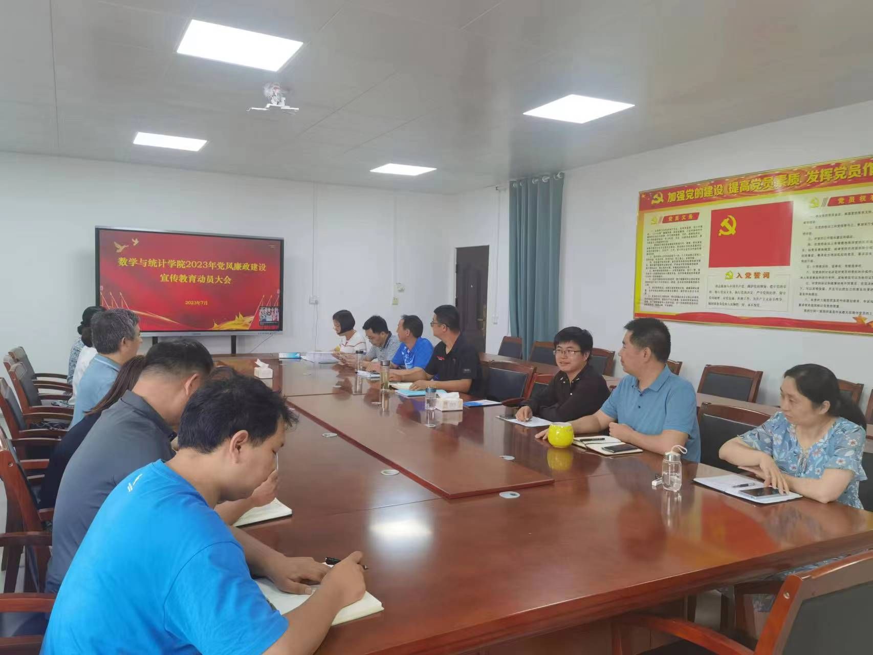 7月14日,beat365开展2023年党风廉政建设宣传教育月活动暨党委书记讲廉政党课,班子成员及党员教师参加,会议由党委书记王晶主持。