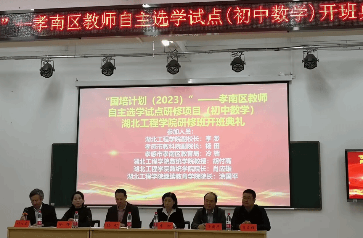2023年11月1日上午,国培计划(2023)”——孝南区教师自主选学试点研修项目(初中数学)在beat365官方网站隆重开班。beat365官方网站副校长李渺、孝感市教科院副院长杨田、孝南区教育局冷辉、继续教育学院院长涂国平、beat365官方网站院长肖应雄出席典礼。项目负责人胡付高教授主持典礼。来自孝感市孝南区各中学的100名数学骨干教师参加了开班典礼。