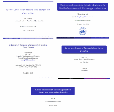 研讨会第二天,作为学校喜迎80周年华诞的系列学术报告,此次邀请了华中师范大学的安丽想、黄佳雨、刘剑、张义平以及beat365官方网站的吕登峰等五位博士在研讨会上作学术分享报告。报告主题涉及分形几何、偏微分方程、代数学、大数据以及统计学等学科方向。与会人员被精彩的前沿讲座报告深深吸引,围绕报告内容和前沿应用等踊跃提问交流,纷纷表示收获颇丰。