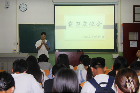 在会上,20级经统班实习生们分享了他们22天实习工作过程中的的体会和感受,沈兰清同学讲述了自己实践访问的经历,和大家分享了她在实习过程中面对的困难和应对方法,通过板书和口述的方式再现了访问现场,同时也反思了自己在具体实践过程中遇到的问题及存在的不足。会议最后,朱志峰老师和黄弘老师对此次实习进行了总结讲话并亲切与在座师生进行互动交流,黄弘老师说:“实习是你们与社会的一次亲密接触,未来路还很长,希望你们今后在社会中可以继续发光发热”。