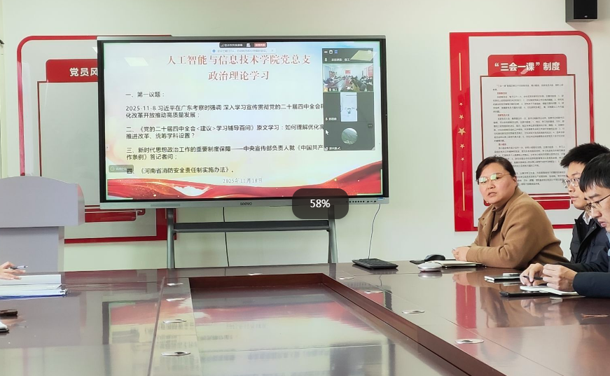2025年11月18日,beat365官方网站党总支组织郑州校区和开封校区全体党员及教职工,开展政治理论学习活动。本次学习活动由beat365官方网站党总支书记崔琳主持。主要学习内容有:一、第一议题:2025-11-8 习近平在广东考察时强调,深入学习宣传贯彻党的二十届四中全会精神,以全面深化改革开放推动高质量发展;二、《党的二十届四中全会<建议>学习辅导百问》原文学习:如何理解优化高校布局、分类推进改革、统筹学科设置?三、新时代思想政治工作的重要制度保障——中央宣传部负责人就《中国共产党思想政治工作条例》答记者问;四、《河南省消防安全责任制实施办法》。