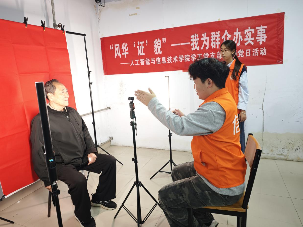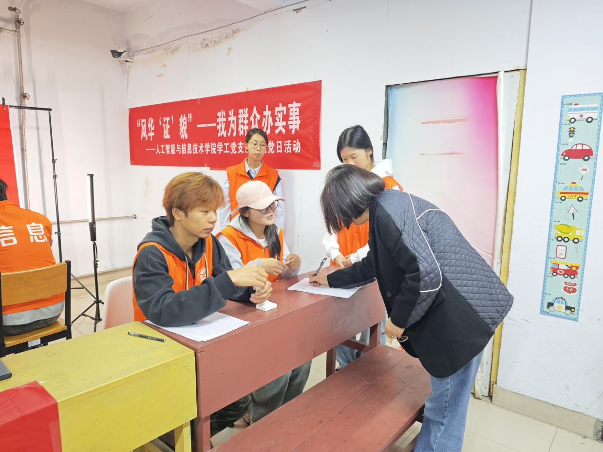 活动前,学工党支部与社区充分沟通,精准掌握了居民对标准证件照的需求,并提前准备好了专业摄影器材、背景布和便携式打印机。在社区活动中心设立的“党员先锋摄影点”,志愿者们耐心地为前来拍摄的居民,尤其是老年人,提供从登记、整理妆容、专业拍摄到精修打印的“一站式”服务。他们运用图像处理技术对照片进行精细化处理,确保每一张交付的照片都符合标准、精神饱满。小小的镜头不仅定格了居民们的风采,更传递了党组织实实在在的关怀。