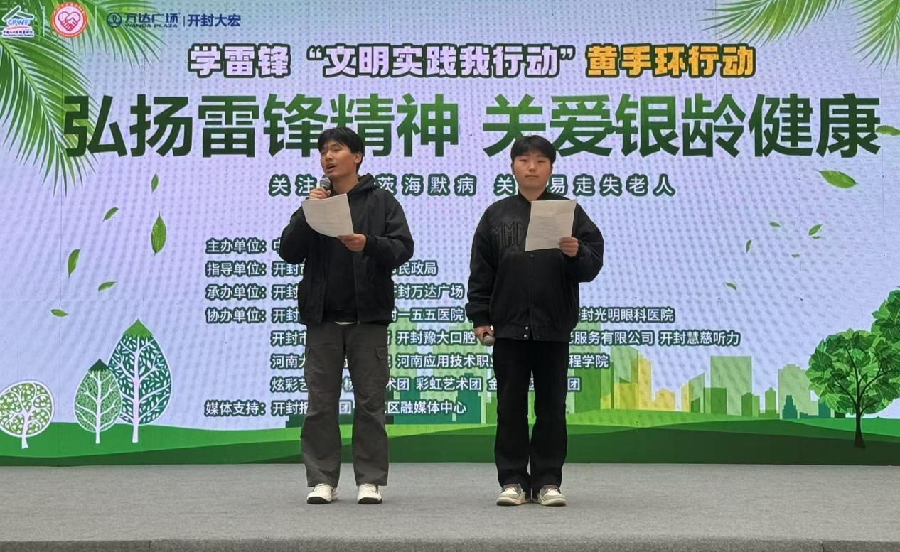 为贯彻落实习近平总书记对深入开展学雷锋活动作出的重要指示,2025年3月9日上午,信息工程学院团总支组织文艺志愿服务队赴开封市“弘扬雷锋精神 关爱银龄健康”大型公益活动现场开展新时代文明实践文艺志愿服务活动,为在场群众带来精彩的节目和暖心的志愿服务。