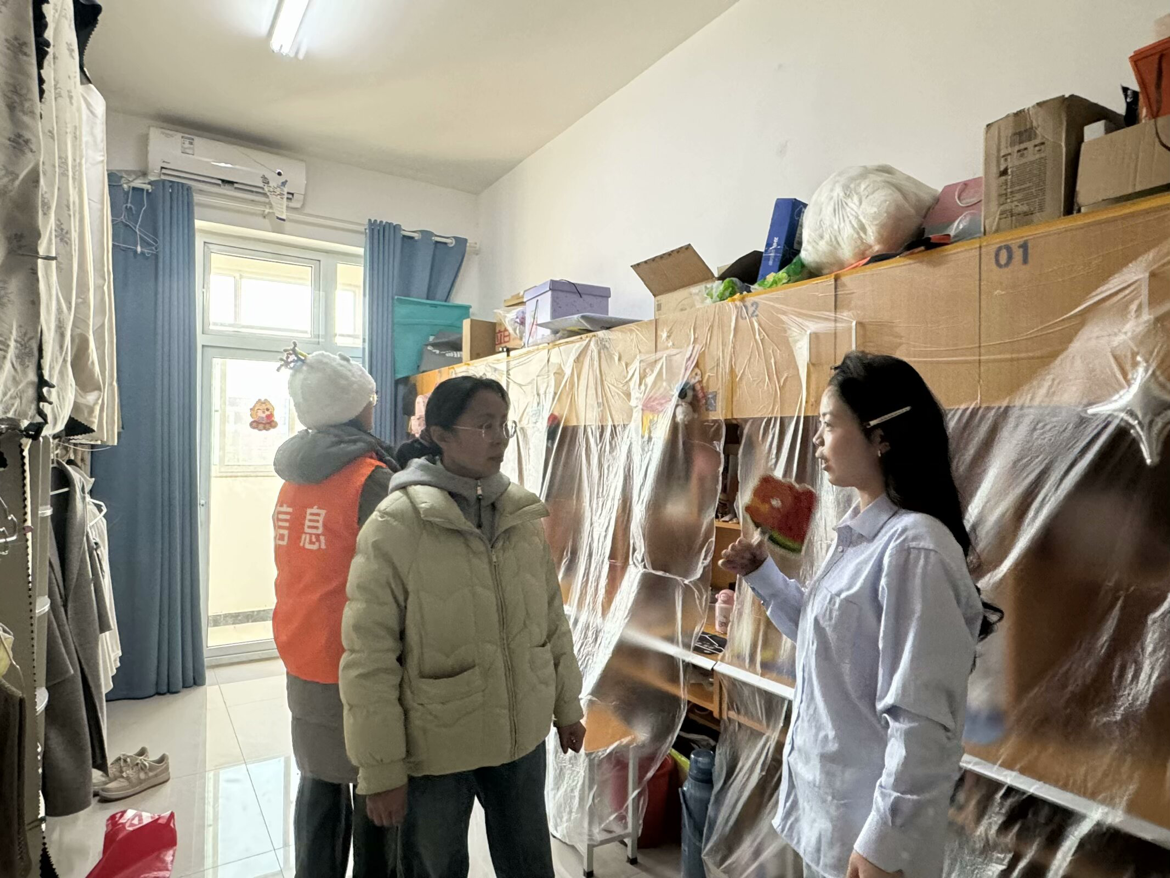 为切实做好假期宿舍安全工作,着力消除安全隐患,共筑平安校园,信息工程学院副院长齐峰、副书记蒋欣哲带领辅导员们深入学生宿舍关注学生诉求,提醒学生归家时注意乘车安全、财产安全;要求其在离校前做好宿舍内的断电、关窗、落锁等工作,并耐心复查验收离校学生宿舍。