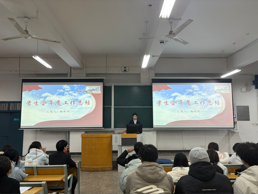 会议的最后,杨帆书记上台致词,他对上述工作汇报给予肯定,并针对汇报中提及的问题短板,提出针对性的改进建议,同时鼓励学生会成员正视不足、主动作为,以精益求精的态度优化工作方法,以凝心聚力的姿态夯实服务基础,让学生会成为学院联系学生的坚实桥梁。